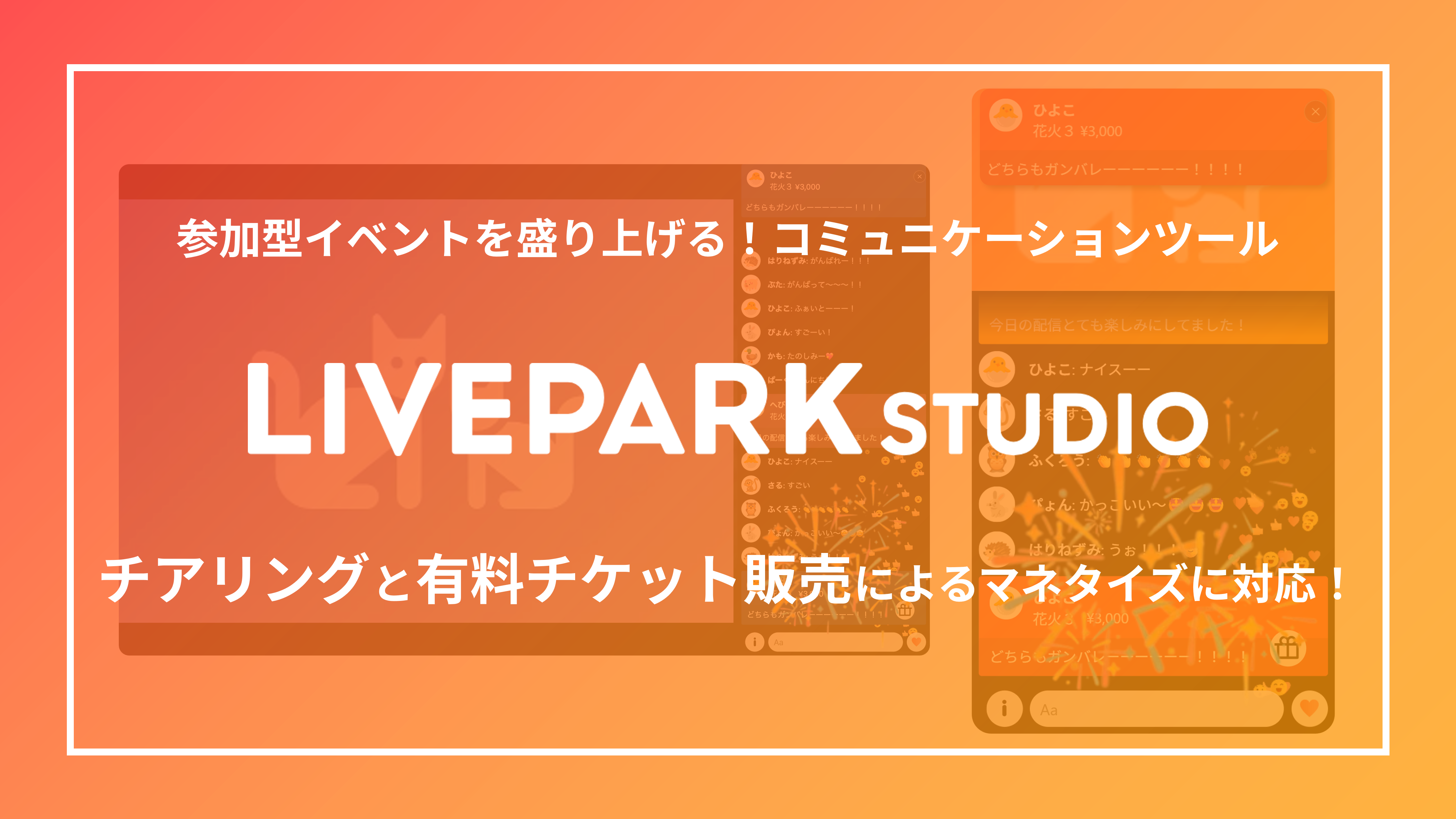 LIVEPARK STUDIO(ライブパークスタジオ)は、一体感のあるリアル・ハイブリッドイベントを実現するコミュニケーションツールです。