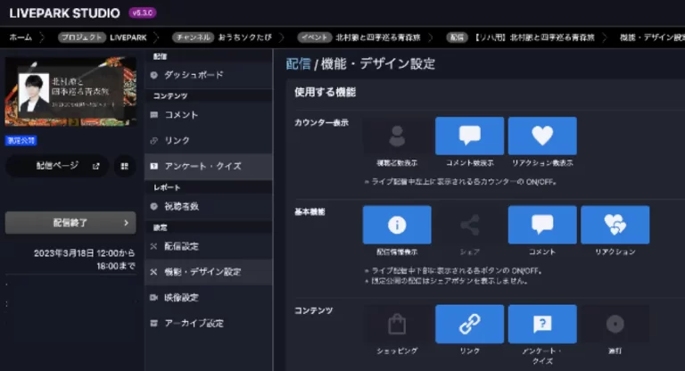 視聴者の反応を向上させる要因として、LIVEPARK STUDIOの双方向性が挙げられます。「おうちソクたび」では、アンケートやクイズ、連打機能を通じて、これまでコメントに抵抗があった人たちが手軽に反応できるようになり、コメント数が一気に上がりました。また、オリジナルのスタンプがカスタマイズできることで、視聴者の反応が可視化でき、画面上での盛り上がりも伝わるとのことです。